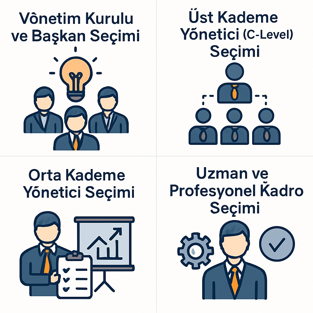 Üst Kademe Yönetici (C-Level) Seçimi; Üst düzey yöneticiler, şirketin genel yönünü belirleyen, stratejik kararları uygulayan ve kurumsal dönüşüm süreçlerine liderlik eden kişilerdir. Staff olarak, C-level seviyesindeki yöneticileri seçerken; liderlik potansiyelini, değer uyumunu, stratejik düşünce yapısını ve sonuç odaklılığı titizlikle değerlendiriyoruz.